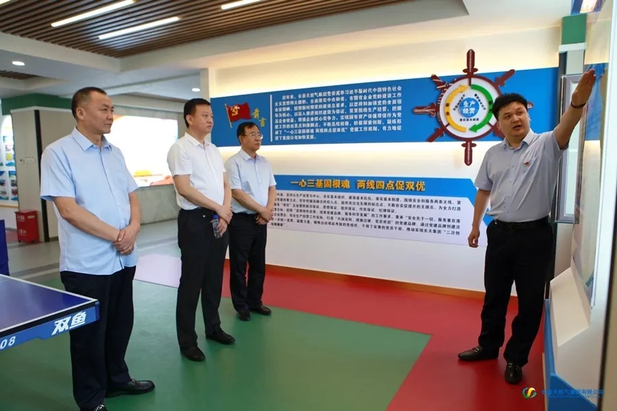蒋主任一行实地调研了彩云区域客户服务中心,现场了解了“5S”服务中心建设情况、延伸服务推广情况以及智能服务应用情况;实地参观了指挥调度中心和客户服务中心,详细了解了依托北斗技术搭建的智慧燃气平台建设情况和“便民通”智能服务系统研发情况;现场参观了长天集团党建品牌创建基地,深入了解了集团“一心三基固根魂,两线四点促双优”的特色党建工作法,对长天集团在保障民生服务、促进城市发展等方面所做的贡献给予充分肯定。