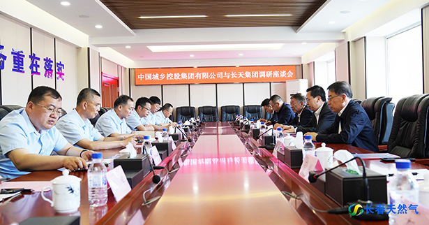 长天集团党委书记、董事长沈洪斌对胡国丹董事长一行的到来表示热烈欢迎,并介绍了长天集团的基本情况、管网布局、保供能力、发展前景以及LNG应急调峰储配站项目建设情况。他表示,中国城乡控股集团拥有国内六大一流产业平台,在技术、管理、人才等方面资源雄厚,期待未来能融合双方发展优势,全面加强战略合作,积极“走出去”与央企对接,为加快推进“气化长春”实施奠定坚实基础。