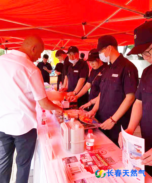 活动现场,通过设立咨询台、发放燃气安全宣传单、展示天然气安全使用展板等形式向市民普及燃气安全知识。