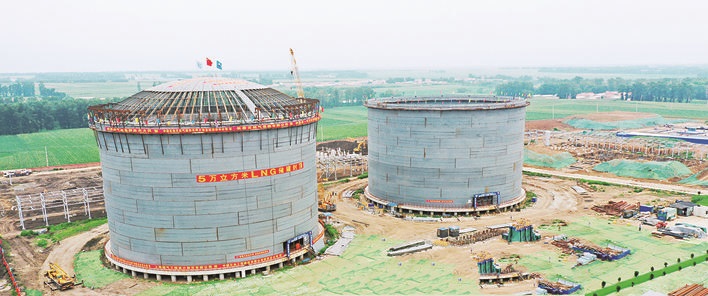 长春市城市LNG应急调峰储配站项目建设涵盖6大系统——储存系统、液化系统、气化系统、装运系统、母站系统和能源展示系统。其中,储存系统是储配站项目的核心,主要由两座液化天然气双金属壁全容罐组成,单座容积5万立方米,高度39.93米,直径52米,换算成气态天然气,总储气规模达到6000万立方米,可满足长春市应急状态下20天以上的用气总量需求,保障长春市天然气能源的战略安全。