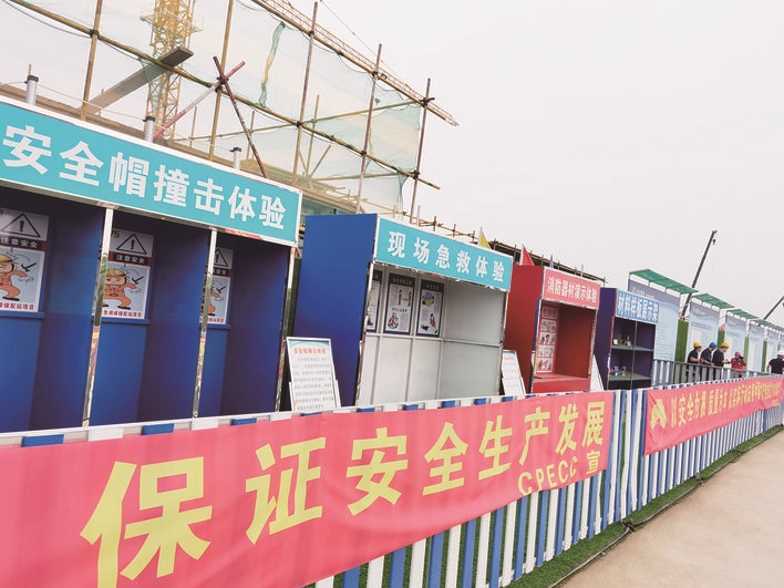 为加强现场人员安全意识和能力,项目部还设立了安全带、安全帽、消防、应急急救等安全体验区,通过组织工人开展安全培训体验,成效显著。