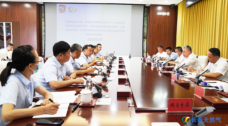 张海治书记对长天集团沈洪斌董事长一行来访表示热烈欢迎,对长天集团一直以来的支持表示感谢,并希望能以此次洽谈为契机,进一步深化合作,以利莲公司为平台,依托清洁能源环保优势,逐步改善区域能源结构,为度假区高质量发展提供坚强有力的能源保障。