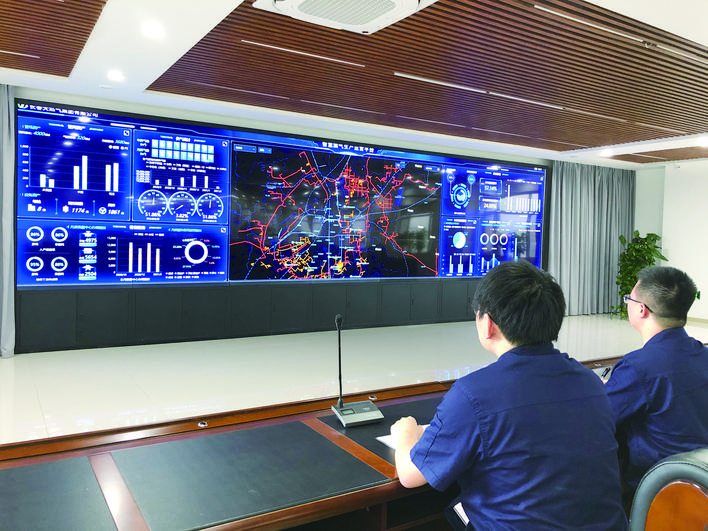 长天集团工作人员正在通过智慧燃气平台监控市区管网运行情况。