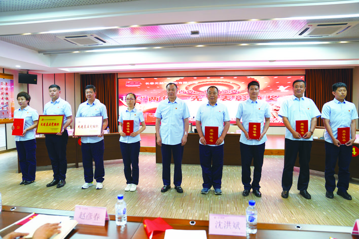长天集团对“两优一先”工作人员进行表彰。