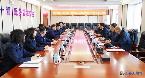 沈洪斌董事长对谢志敏书记一行的到来表示热烈欢迎,对经开区多年来给予长天集团的大力支持表示感谢。他表示,长天集团作为驻区市属国有企业,将积极发挥国企担当,在区域能源保障供应、燃气配套设施建设、老旧小区管网改造、“阀、管”改造等方面积极作为,与经开区密切配合,为区域经济高速增长作出更大贡献。