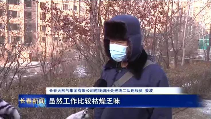 长春天然气集团有限公司巡线调压处巡线二队巡线员 姜波:(记者 徐静:姜师傅咱们每天的工作主要负责什么?)正常巡检,检测地下管网、调压箱、正常中压管线打孔检测,每天得走两三万步,小区大概在30到40栋楼,调压箱十五六座,因为没有固定数。