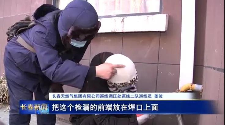 长春天然气集团有限公司巡线调压处巡线二队巡线员 姜波:(记者 徐静:姜师傅咱们检测第一步需要干什么?)把这个检漏的前端放在焊口上面。(记者:是这吗?)对,这个也可以,测它有没有漏点,螺丝有没有松动(记者:我看一下它现在数值是零,说明是一个安全的状态。)对对,没有问题。