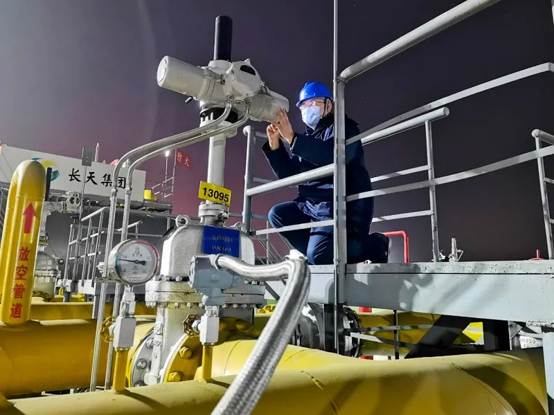 疫情期间,非居民用户停工停产,用气量减少,为了保障输配运行系统安全平稳,主动降低输配运行压力,通过智慧燃气生产运营平台监测整个管网运行情况,及时调整供气量和供气压力。同时,长天集团每天100余人,14天一个班次,坚守在输气场站,确保气源安全稳定供应。
