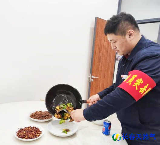 疫情原因厨师被居家隔离,所以做饭的任务也落在了工作人员的肩上,他化身厨师主动承担起一日三餐为同事做饭的任务,买菜做饭,解决了同事们的后顾之忧。孜然牛肉粒、麻辣香锅、尖椒土豆片……他变着花样的菜谱让封闭中的同事们感受到了家的味道。