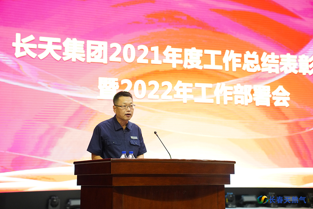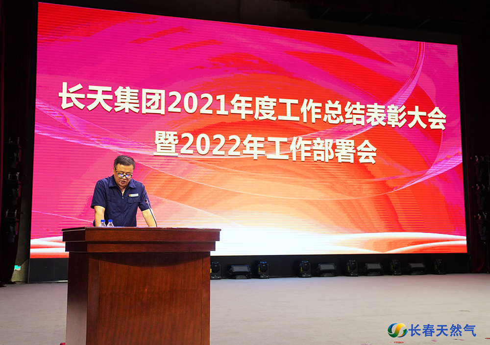 党委副书记、总经理赵彦春作了题为《乘势而上 勇毅前行 全力打造科技型能源投资集团》的工作报告,从党的建设、企业改革、保障供气、安全生产、服务质量、市场开发、项目建设、技术创新、对外合作、廉政建设等十个方面对2021年工作完成情况进行了总结,并对2022年工作进行了部署安排。他指出,2021年,是深化国企改革的攻坚之年、关键之年,一年来,集团公司按照市委、市政府的决策部署,在市国资委的正确领导下,以“国企改革三年行动实施方案”为落脚点,坚持“安全先于一切,服务重在落实”的服务理念,着眼“致力于提供一流的低碳智慧能源服务,打造科技型能源投资集团”的企业愿景,形成综合能源、智慧能源、投资服务等三大板块协同发展的新格局,进一步明晰了企业发展定位,提升了党建引领在集团高质量发展中的决定作用,树牢了“精、细、严、实、新”的工作作风,突出了大师工匠、岗位技能带头人的先锋模范作用,强化了指挥调度和客户服务的智能化、数字化水平,提升了职工的幸福指数和满意度,营造了干事创业、拼搏进取的良好氛围,各项工作都实现了新提升,疫情防控取得阶段性成果,向科技型能源投资集团的发展目标迈出了坚实的一步。他强调,2022年是国企改革的收官之年,也是长天集团转型升级的关键一年,要在市委市政府的领导下,充分把握新一轮国企改革机遇,以国企改革三年行动作战图时间表为抓手,紧紧围绕建设长春现代化都市圈、打造“三强市、三中心”、实现常住人口超千万、经济总量超万亿的战略部署,对标世界一流提质增效,进一步提升集团与子公司市场化竞争能力和服务能力,持续抓好“十抓十促进”各项工作,为长春实现“六城联动”,建设“十大工程”提供强有力支持和坚实能源保障。