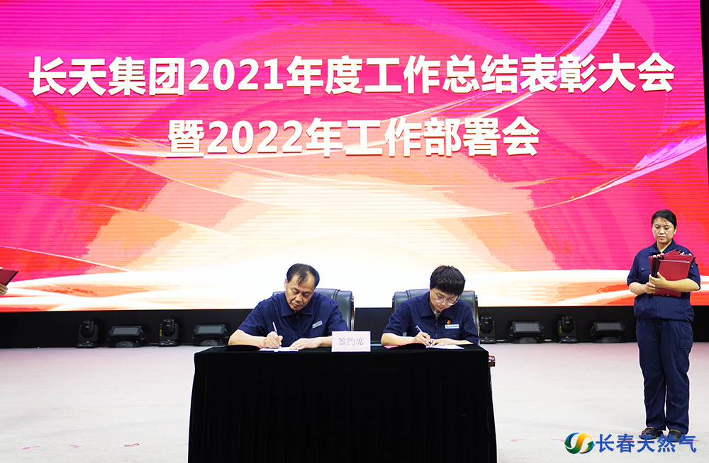 会议对2021年各方面工作中涌现的98个先进集体和354名优秀个人进行了表彰奖励,并颁发了奖牌和荣誉证书。集团公司领导班子成员,9个子(合资公司)的负责人分别与沈洪斌董事长签订了2022年度经营目标责任书。