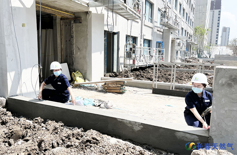 正有集团工作人员检查燃气工程施工现场。 兴泰公司工程监理人员正在对隐蔽工程进行检验。