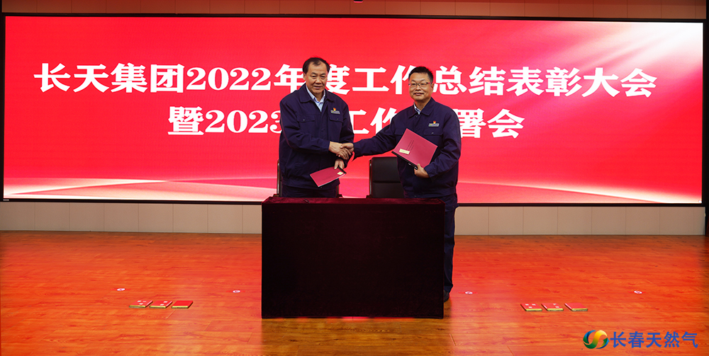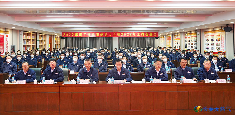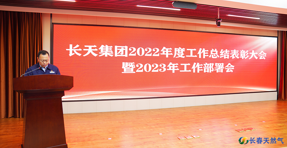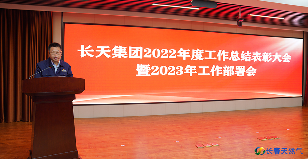 党委副书记、总经理赵彦春作了题为《稳中求进 赓续前行 全力开创长天集团高质量发展新篇章》的工作报告,从党建引领、企业改革、保障供气、安全生产、服务质量、市场开发、项目建设、技术创新、对外合作、廉政建设、疫情防控等十一个方面对2022年工作完成情况进行了总结,对2023年工作进行了部署安排。他指出,2022年,是长天集团实现转型升级的一年,也是深化国企改革的收官之年。一年来,集团公司领导班子带领广大干部职工,按照市委、市政府的决策部署,克服了转型升级的阵痛、特殊天气的挑战、新冠疫情的冲击,全面推进“国企改革行动计划”,深入学习贯彻落实党的二十大精神,坚持稳中求进工作总基调,充分发挥党建引领保障作用,加快长天集团高质量发展步伐,全力以赴抓项目、兴产业、稳增长,营造了干事创业、拼搏进取的良好氛围,各项工作都实现了新提升。在改革上,全面推进“国企改革行动计划”,刚性任务完成率达100%,代表长春市在省国资委组织的三项制度改革专项检查中名列前茅;在项目上,积极推进LNG储配站项目建设及各城区配套管网建设,储配站项目顺利建成并一次性试车成功,使长春市在省会城市的储气能力排名中一跃成为前列,长天集团实现从单一销售向全产业链的转型升级;在安全上,安全隐患整改有序推进,解决了很多多年来的安全隐患,实现全年安全生产零事故;在服务上,服务中心克服疫情影响,依然实现在市长公开电话对92个单位的综合考评中名列前茅;在开发上,主动服务、积极谋划,进一步完善了城市管网布局,保障了公司的可持续发展;在保供上,积极协调上游气源单位,科学合理调度,保障了用户用气需求;在党建上,丰富了“红色源动力”,推动了党的建设与生产经营的深度融合;在防“疫”上,414人的志愿者队伍支援宽城、新区等区域,100余名员工主动报名献血,向包保村、红十字会、总工会等机构捐款捐物,多措并举助力企业复工复产,实现了疫情防控和安全生产的双丰收。他强调,2023年是贯彻落实党的二十大精神的开局之年,也是长天集团践行“12345”总体战略规划的关键一年。要在市委市政府的领导下,充分把握“十四五”时期能源发展主基调,乘势而上、排难而进,把国企改革贯穿工作始终,坚持稳中求进工作总基调,对标世界一流提质增效,进一步提升集团与子公司市场化竞争能力和服务能力,持续抓好“十抓十促进”各项工作,在保障燃气安全生产、实现科技型能源投资集团、建设世界一流企业中展现新作为,为长春实现“一主六双”,“六城联动”,建设“十大工程”提供强有力支持和坚实能源保障。