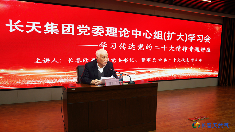 为深入学习贯彻党的二十大精神,11月3日上午,长天集团召开党委理论学习中心组(扩大)学习报告会,特邀党的二十大代表、长春欧亚集团股份有限公司党委书记、董事长曹和平,做学习传达党的二十大精神专题宣讲。长天集团党委书记、董事长沈洪斌主持会议并讲话。