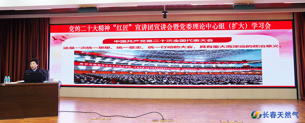 3月29日下午,长天集团召开党的二十大精神“红匠”宣讲团宣讲会暨党委理论中心组(扩大)学习会,邀请亨泰公司党支部副书记、长春市国资委系统党的二十大精神“红匠”宣讲团成员李馥作宣讲。
