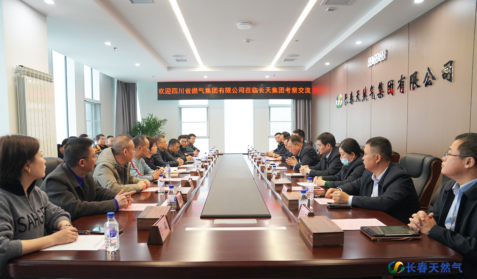 11月22日,四川省燃气集团有限公司工会主席余杰、副总经理夏江洪一行到长天集团考察交流。长天集团总经理、党委副书记赵彦春,副总经理潘为群,监事会主席李玉光,安全服务总监张喆,工会主席王利参加交流座谈。