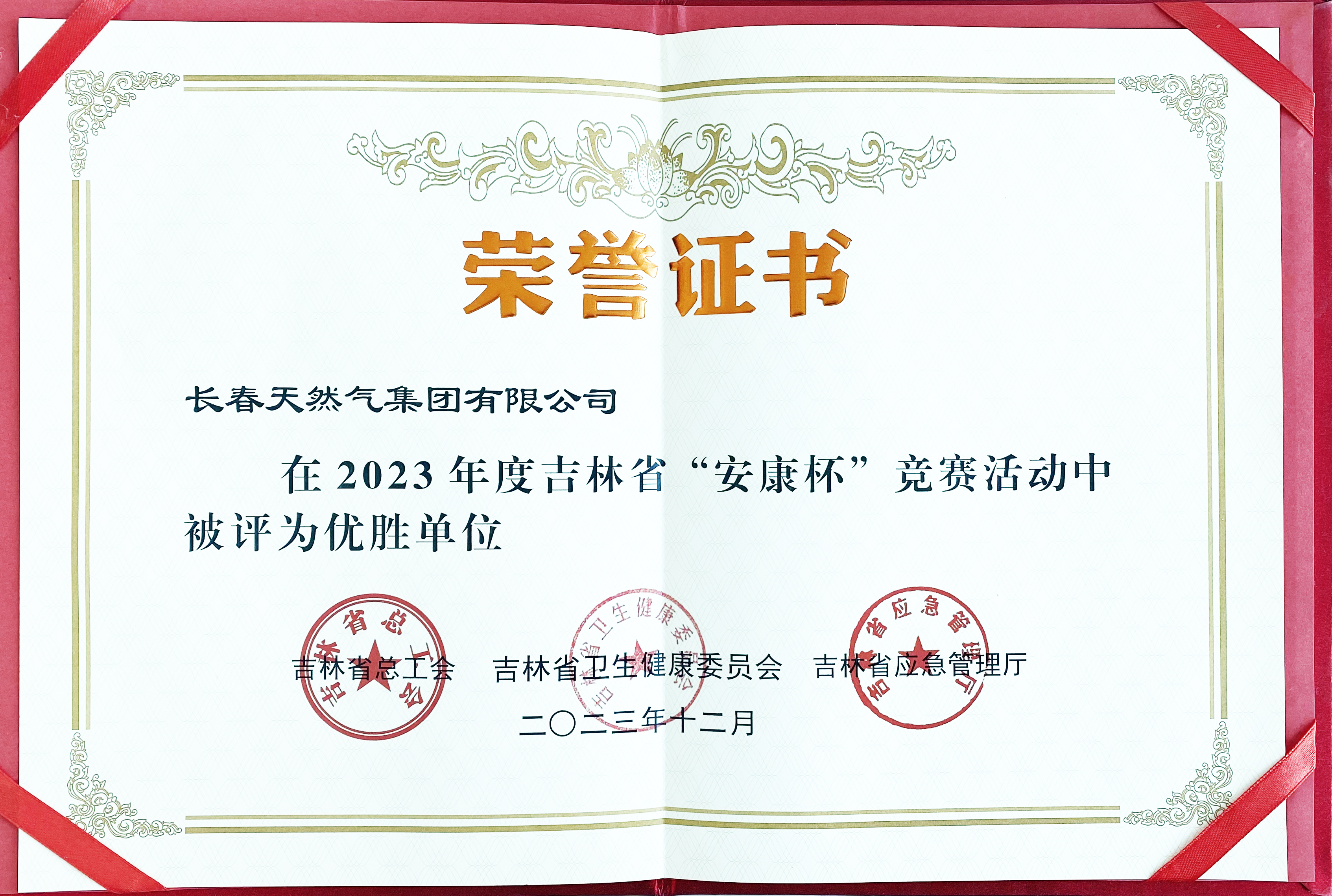 热烈祝贺长春天然气集团有限公司在2023年度吉林省“安康杯”竞赛活动中被评为优胜单位!