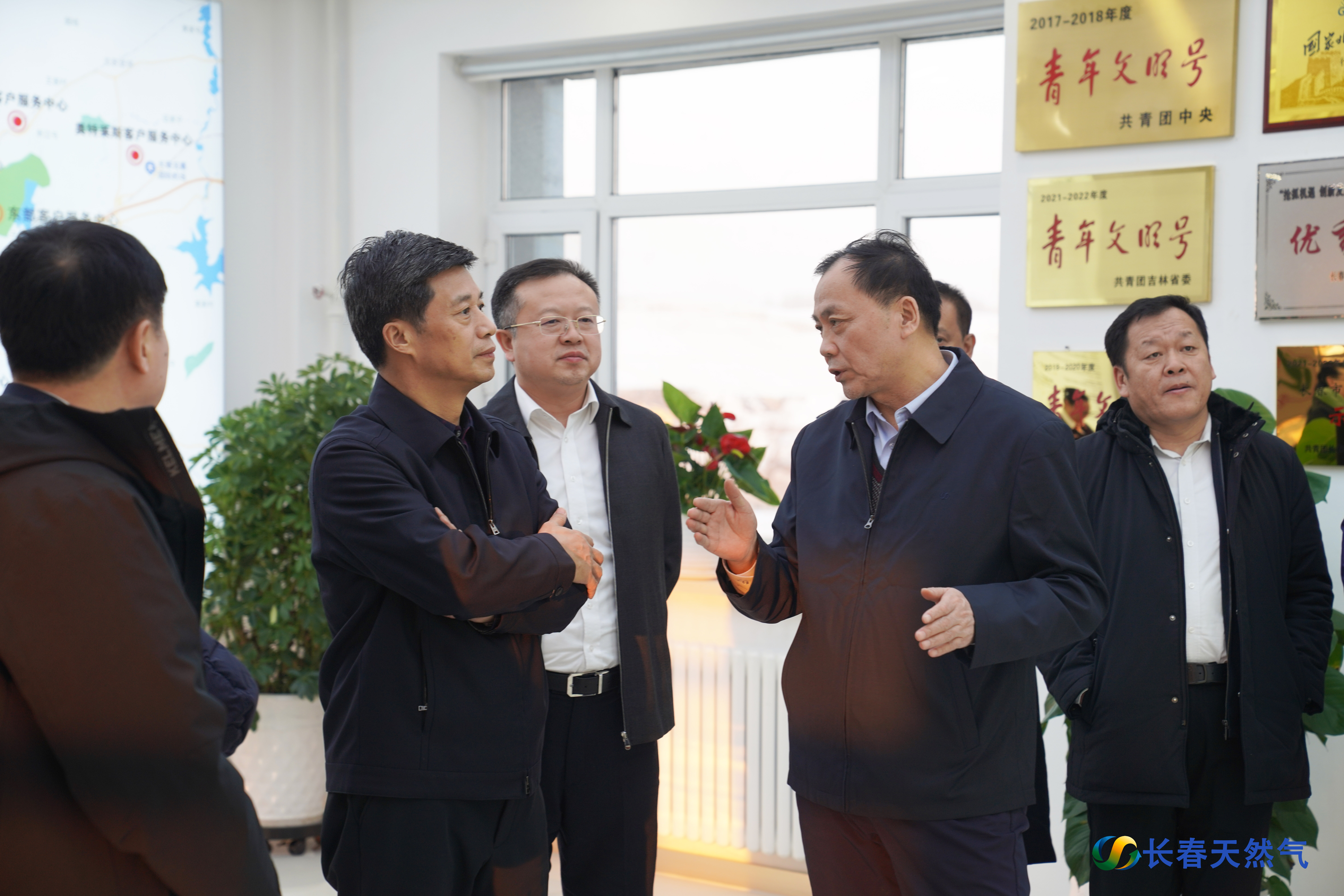在生产计划调度中心和客户服务中心,金育辉一行观看了智慧燃气平台以及一体化便民服务平台的操作演示,听取了长天集团党委书记、董事长沈洪斌关于管网安全智能化管理、气源管输保障能力、老旧燃气管道摸排整改和阀管改造、下游需求及服务保障、应急抢险抢修等方面的工作汇报,对长天集团目前良好的安全生产状况和完善的智能化保障机制,以及近几年取得的突出安全生产业绩和显著生产效益、社会效益给予充分肯定。金育辉强调,安全生产永远在路上,只有起点没有终点,要牢固树立高度的安全意识和责任意识,常抓不懈,认真落实各项管理制度和防控措施,坚决杜绝麻痹思想和侥幸心理,利用“人防+技防”,切实做好日常维护和安全巡查,仔细排查燃气安全隐患,科学调度供气工作,强化应急保障,提高供气服务水平和质量,全力保障燃气安全稳定供应,确保群众温暖过冬、祥和过年。