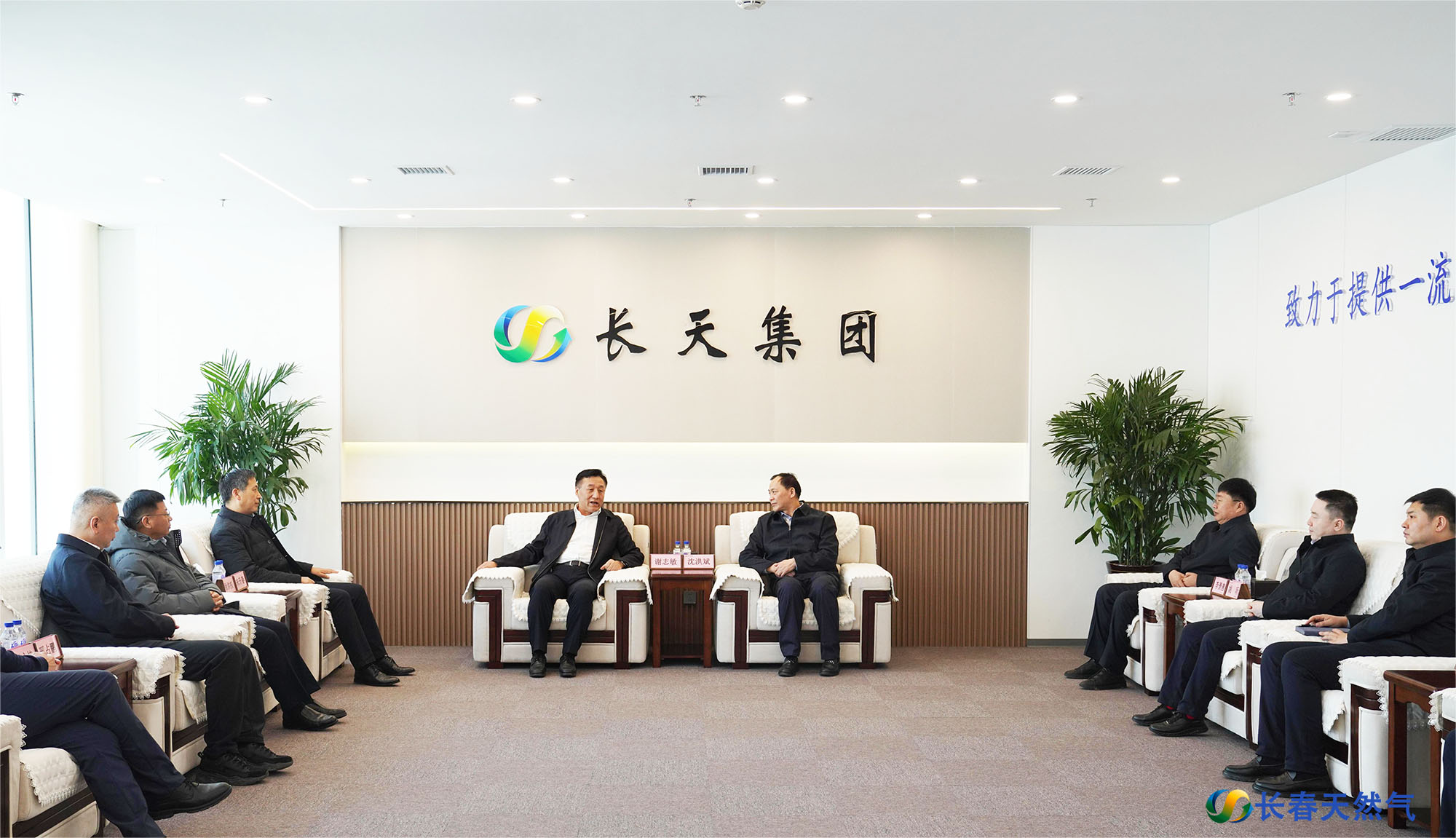 长天集团党委书记、董事长沈洪斌代表集团全体员工向经开区领导的到来表示欢迎和感谢,并重点汇报了集团公司近年经营发展状况,以及新一年的发展规划。谢志敏对长天集团为全区经济社会发展作出的积极贡献表示感谢,对长天集团发展现状、综合效益及产业布局表示充分肯定,他指出,近年来,长天集团大力优化气源供应结构,持续推进智能化远程监管,积极拓宽业务领域,多向气源供气能力和燃气安全保障能力进一步提升,经营业绩不断进步,为地区经济发展注入了新活力,在推动城市燃气行业高质量发展中展现了新担当,未来发展前景广阔。他希望,长天集团持续坚定发展信心,把握发展趋势,强化发展动力,进一步推动企业做强做优做大,为助推长春市全面振兴率先实现新突破作出更大贡献。他表示,区委、区政府将一如既往关心和支持企业发展,深化政企沟通协作,做实做细各项服务保障工作,切实解决企业生产经营过程中存在的困难和问题,为企业发展注入强劲动能,实现企业发展和地方经济发展同频共振、互利共赢。