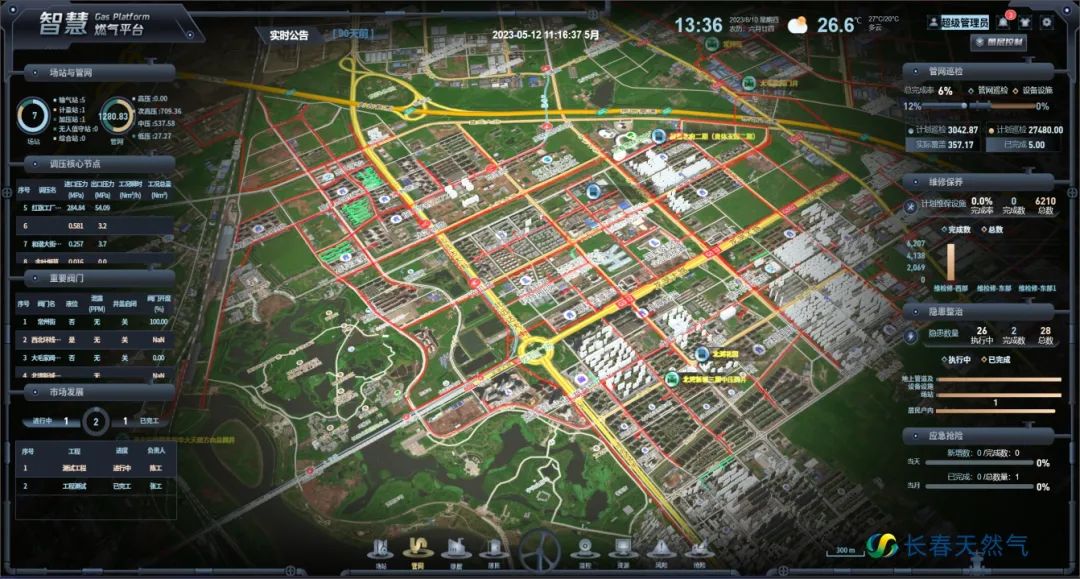 长天集团智慧燃气生产运营平台上线运行,实现厘米级定位、分钟级关闭、全天侯级监测、量化级预测“四级管理”,长天集团完成生产管理的数字化转型。