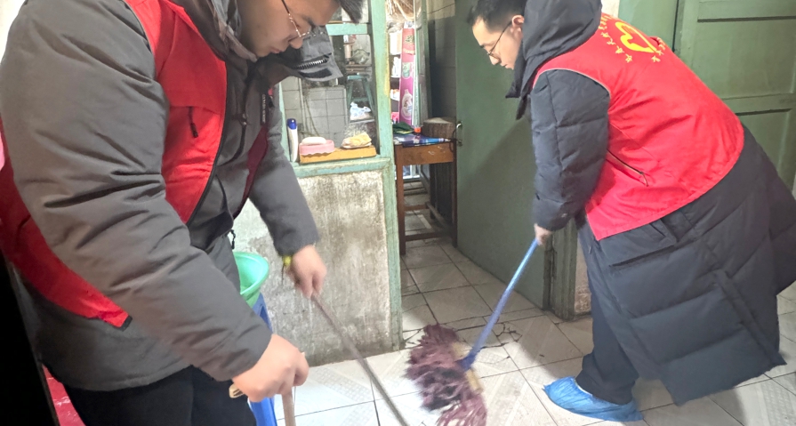 志愿者们一抵达老人的住所,经过简短的交流后便迅速展开工作,分工明确。几名志愿者拿起清洁工具,开始打扫卫生。他们仔细清理每一个角落,擦拭家具、清扫地面、整理杂物,让房间变得干净而明亮。另外一些志愿者为老人提供理发服务,耐心询问需求,细致地修剪头发。不久,老人的面容焕然一新,笑容满面。志愿者还帮助老人贴上了春联,为家中增添了节日气氛。临别前,志愿者们还提醒老人冬季寒冷,要注意保暖、多增衣物,并送上了新年祝福。