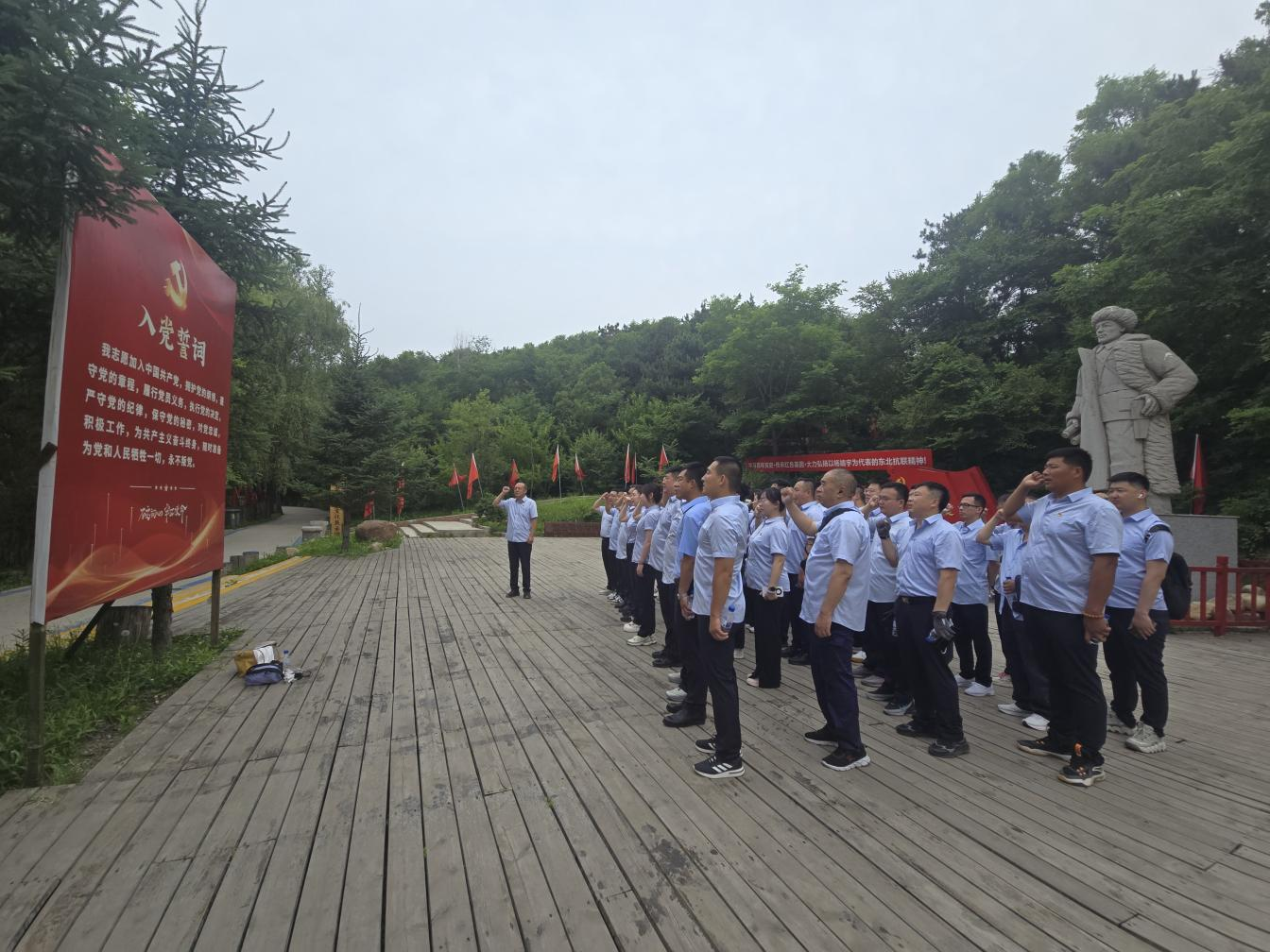 活动中,全体党员干部跟随讲解员重走抗联路,实地感受抗联战士在艰苦环境下储备军需、医治伤员、修理枪械、收集敌情、宣传抗日、缝制冬衣等战斗生活场景,深刻体会东北抗联将士在白山黑水间抗击日本侵略者的英勇无畏。随后,党员干部走进东北抗日联军第一陆军展览馆,参观学习以杨靖宇将军为代表的东北抗日联军,深入敌后孤军奋战14年,为全民抗战建立战略功绩的光辉历史,深刻领悟忠贞报国、前仆后继、勇赴国难的东北抗联精神。在尚德广场杨靖宇将军雕像前,全体党员面向党旗庄严宣誓,重温入党誓词,坚定初心使命,永葆政治本色。